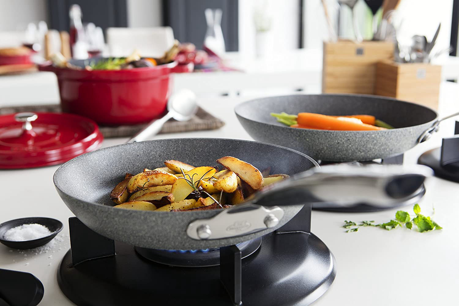 Ballarini տեսականին ներառում է մոտ 600 դիրք։ Դրանց մեջ կարելի է գտնել գրեթե ամեն ինչ՝ կաթսաներից ու թավաներից մինչև շերեփներ և այլն։ Գույների և չափերի ընտրությունը բազմազան է։ Օգտագործողները նշում են սպասքի հետ աշխատելու հարմարավետությունը։ Բռնակները չեն տաքանում նույնիսկ բարձր ջերմաստիճանի դեպքում՝ բացառելով այրվածքների հավանականությունը։ Հաստ տապակի հատակը նպաստում է ջերմության հավասարաչափ բաշխմանը և կայունության բարձրացմանը: Այն չի դեֆորմացվում, երբ տաքանում է, և դա երաշխավորում է երկարակեցություն: Բացի այդ, իտալական ոճային դիզայնը, որը բնորոշ է Ballarini-ի յուրաքանչյուր մոդելին, աննկատ չի մնում։